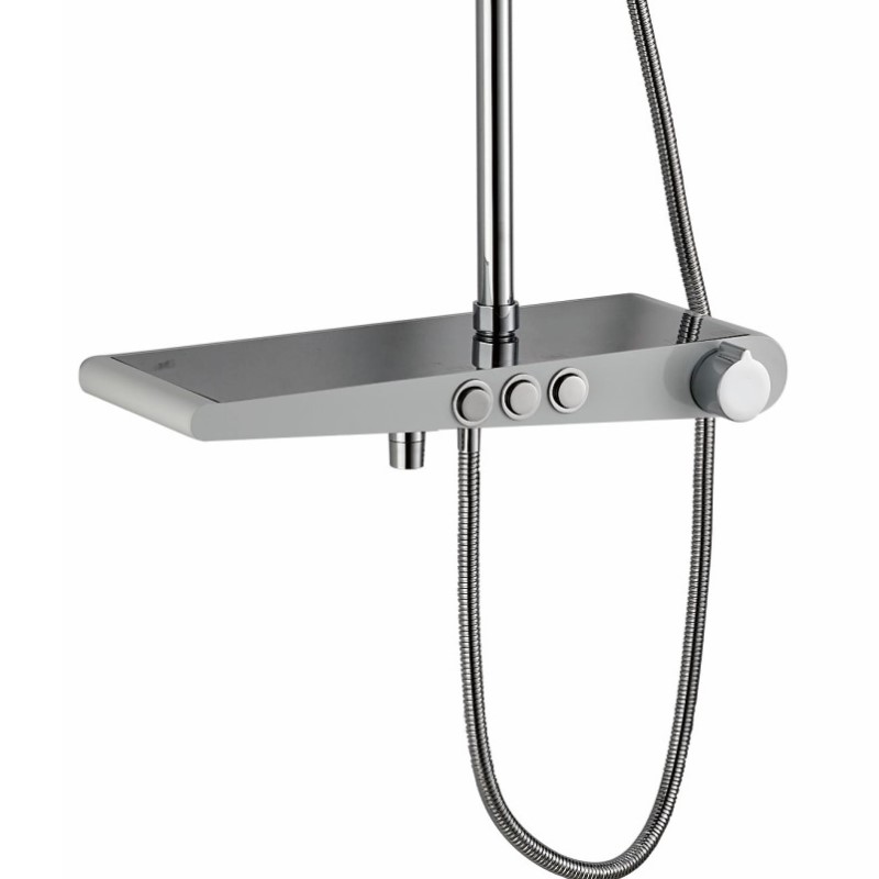 Душевая стойка востребованного бренда Haiba производства Китая чудесно дополнит интерьер ванной комнаты и предоставит возможность с удобством осуществлять все гигиенические манипуляции. Ее высота составляет 153.7 см, длина шланга 150 см, а размер лейки см. Благодаря качественному материалу исполнения - латуни, поверхность системы обладает устойчивостью к образованию известковых отложений и царапин, а также не требует значительных усилий при уходе. Приятный и неброский внешний вид модели и цвет - белый, сделают ее завершающим акцентом в планировании душевой. Стойка сделана в соответствии со всеми номами европейских стандартов и обладает гарантией - 5 лет. Артикул модели HB2419. Верхний душ легко регулируется, что позволяет откорректировать самый оптимальный угол наклона при использовании.