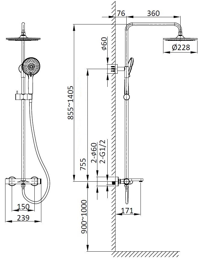 Душевая стойка со смесителем Vincea Rondo VSFS-1R1BG золото матовое