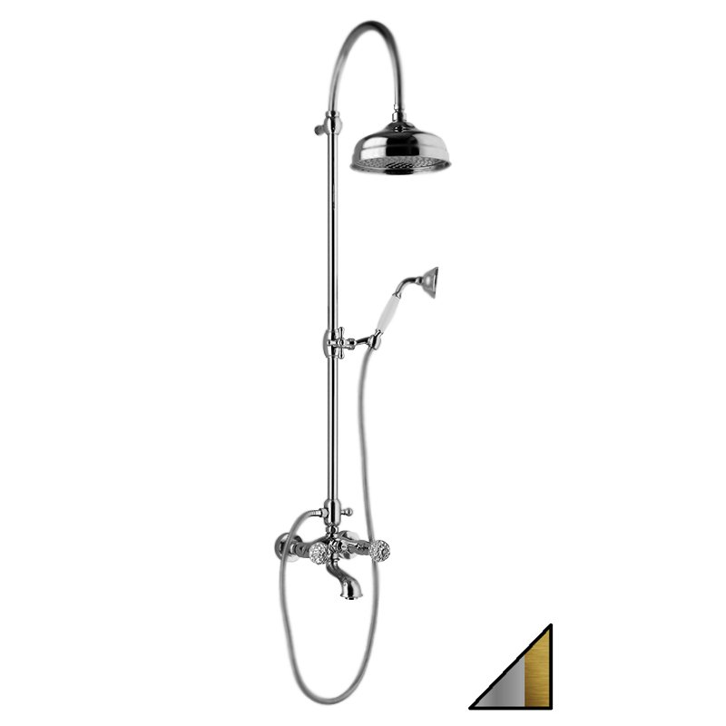 Душевая стойка Karenina популярного бренда Webert производства Италии превосходно впишется в пространство ванного помещения и даст возможность легко осуществлять все водные манипуляции. Ее высота составляет 154 см, длина шланга 150 см, а размер лейки 7.5 см. Из-за качественного материала изготовления - латуни, поверхность системы очень стойкая к образованию налета, отложений и царапин, а также не требует особых усилий для поддержания чистоты. Интересный и неброский дизайн модели и цвет - хром, сделают ее завершающим акцентом в планировании душевой. Стойка произведена в соответствии со всеми номами европейских стандартов и располагает полной гарантией - 5 лет. Артикул модели KA721208017. Верхний душ достаточно просто регулируется, что позволяет настроить оптимальный угол наклона при использовании.