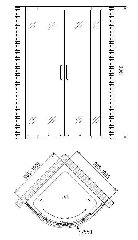 Душевой угол GEMY Victoria 100x100x190 профиль хром, стекло прозрачное, две дверцы
