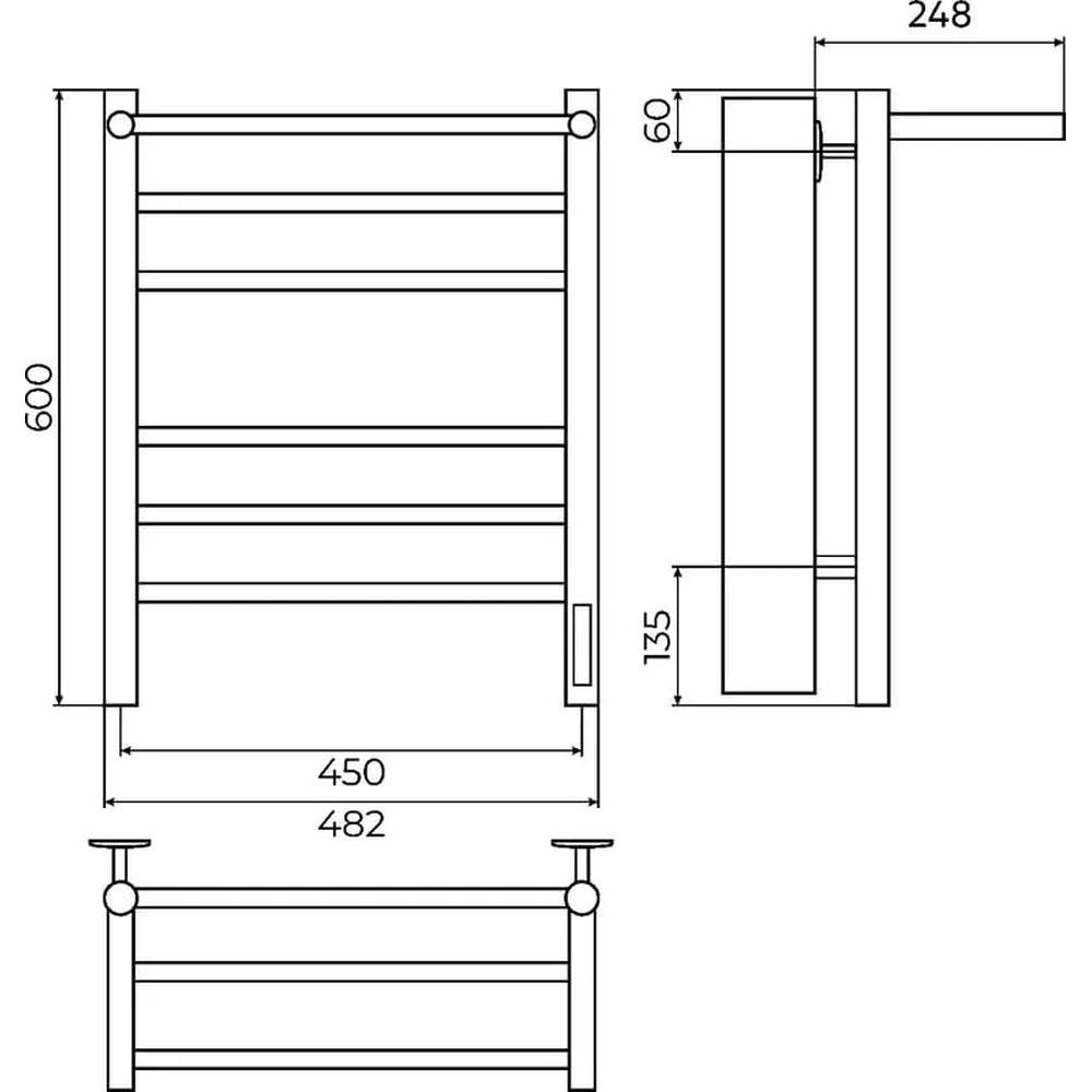Полотенцесушитель электрический с полкой Terminus Аврора П6 45х60 КС 905, черный матовый