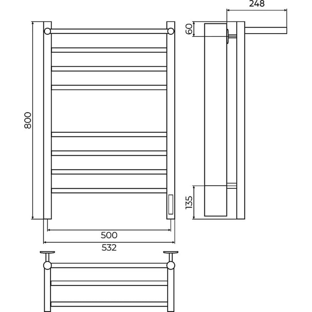 Полотенцесушитель электрический с полкой Terminus Аврора П8 50х80 КС 903, белый матовый