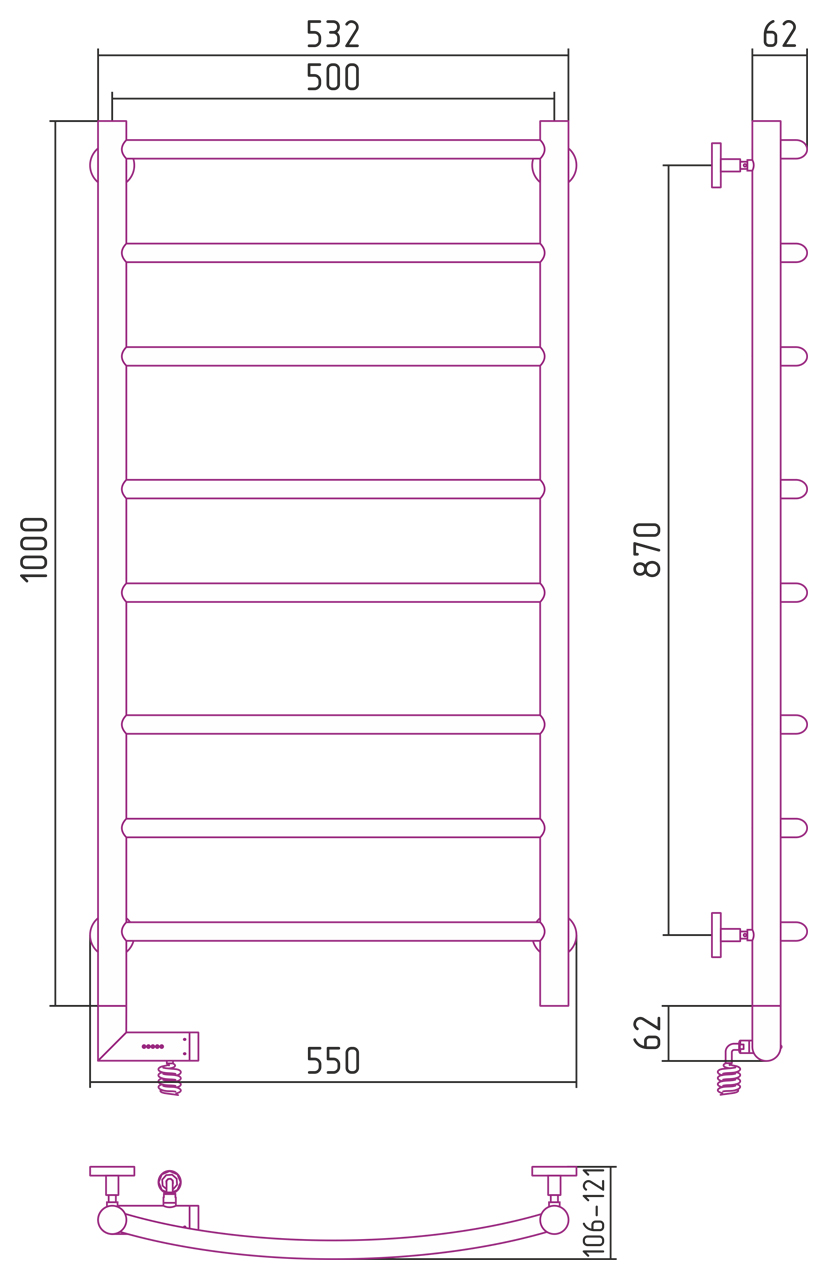 Выбор отопительных приборов - серьезный этап в обустройстве ванной комнаты. Полотенцесушитель электрический Сунержа Галант 2.0 100х50 белый, подключение левое - замечательный вариант, который с легкостью может обогреть пространство и гарантирует отсутствие нежелательной влажности, независимо от времени года. Форма модели - лесенка, она выполнена из термопрочного материала - нержавеющей стали. Новейшее оборудование производителя Сунержа характеризуется небольшим энергопотреблением, а тип шва - электросварный, обеспечивает конструкции значительную прочность. Модель имеет размеры ширина - 55 см, глубина - 10.6 см, высота - 106.2 см., что наряду с подвесной системой монтажа позволяет легко зафиксировать полотенцесушитель. Направление конструкции - левое, подключение по системе электропровод с вилкой или скрытое электрическое соединение. Такие параметры обеспечивают особое удобство во время эксплуатации. Модель серии Галант 2.0 реализуется с гарантийным сроком 7 лет и изготовлена в России, что свидетельствует о надежности и долговечности продукта.