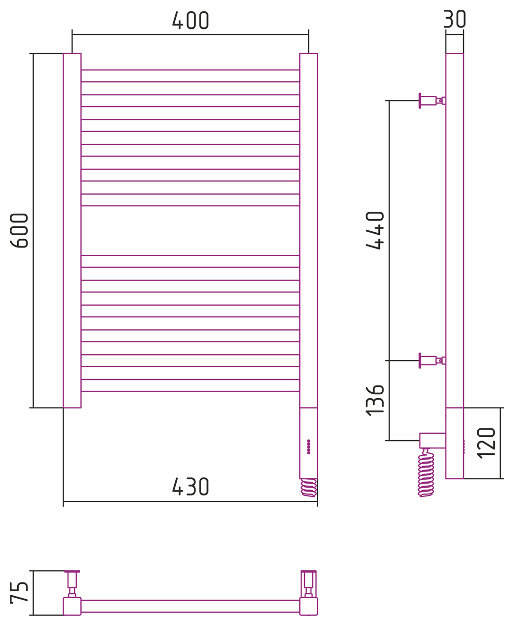 Полотенцесушитель электрический Сунержа Модус 3.0 60х40 сатин, правый ТЭН