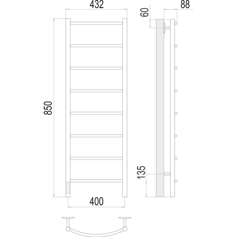 Полотенцесушитель электрический Terminus Классик П8 40х85, левый