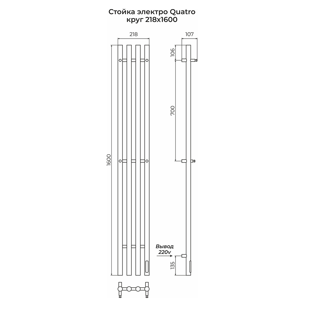 Полотенцесушитель электрический Terminus Стойка QUATRO круг 160