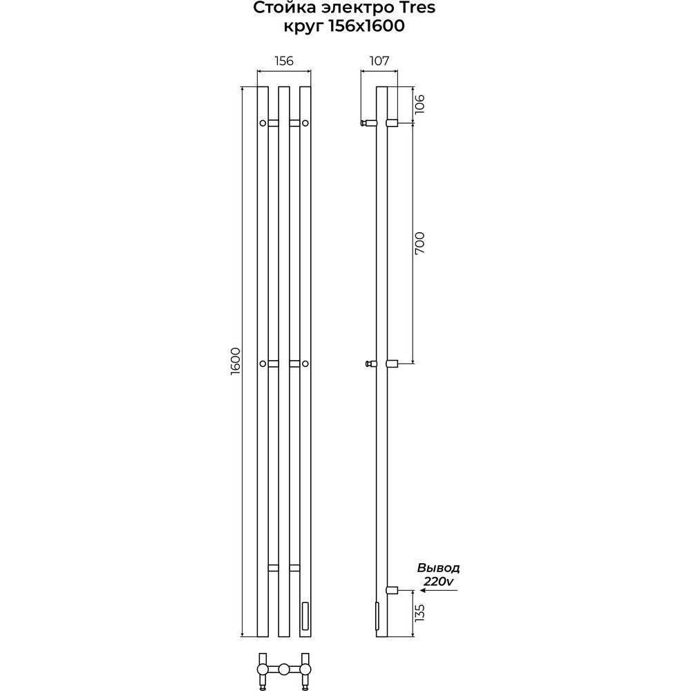 Полотенцесушитель электрический Terminus Стойка TRES круг 160, черный муар