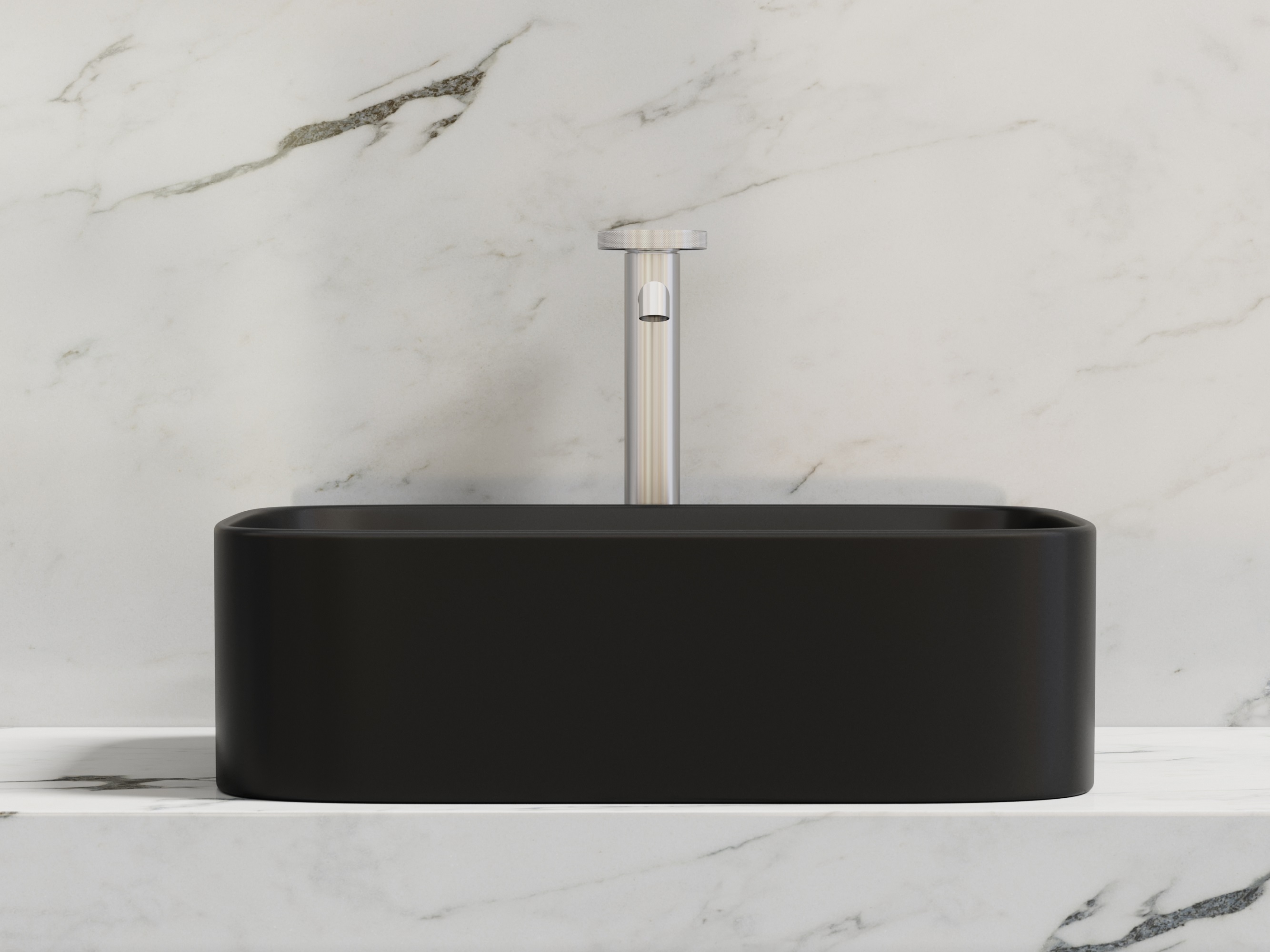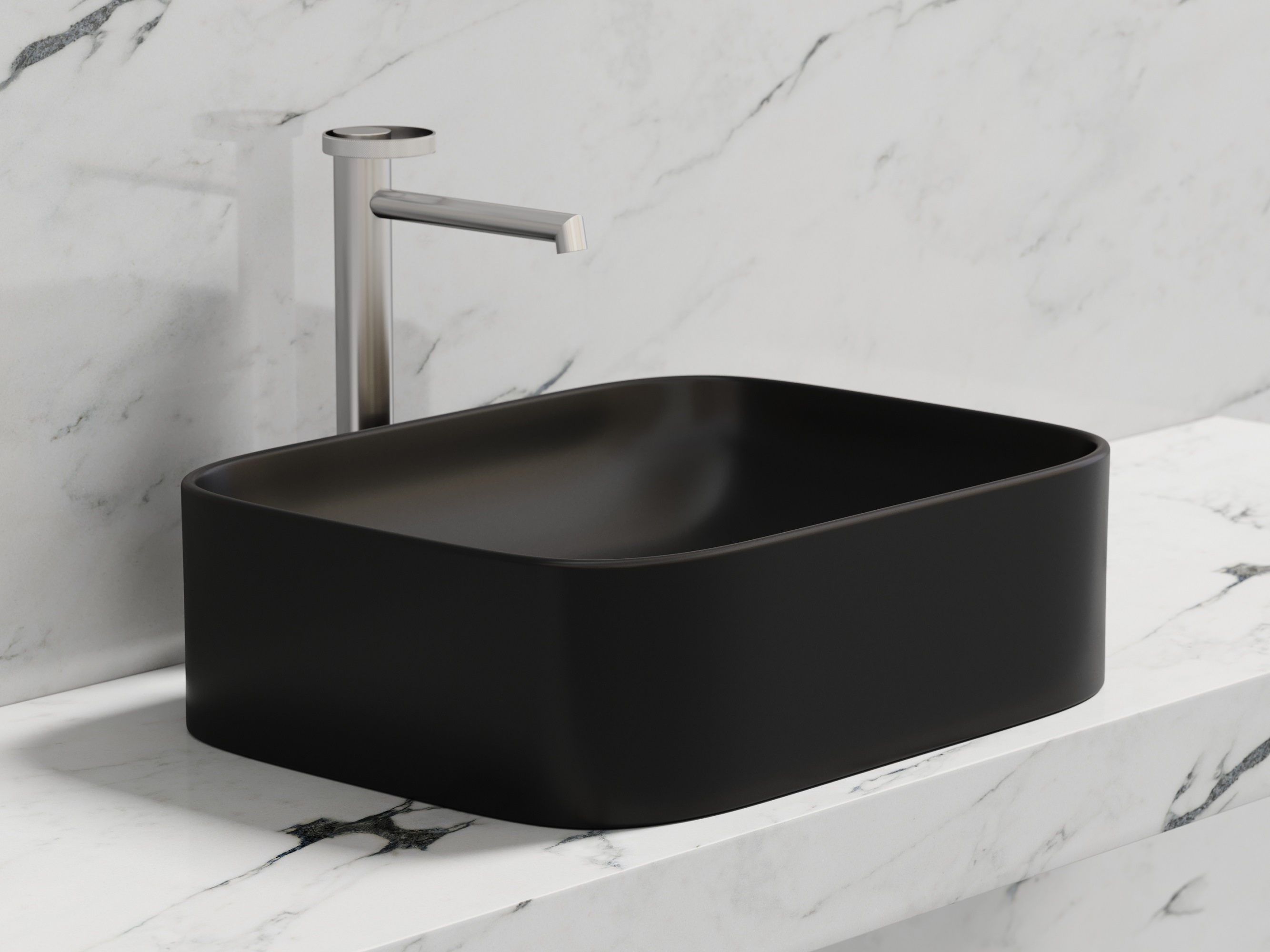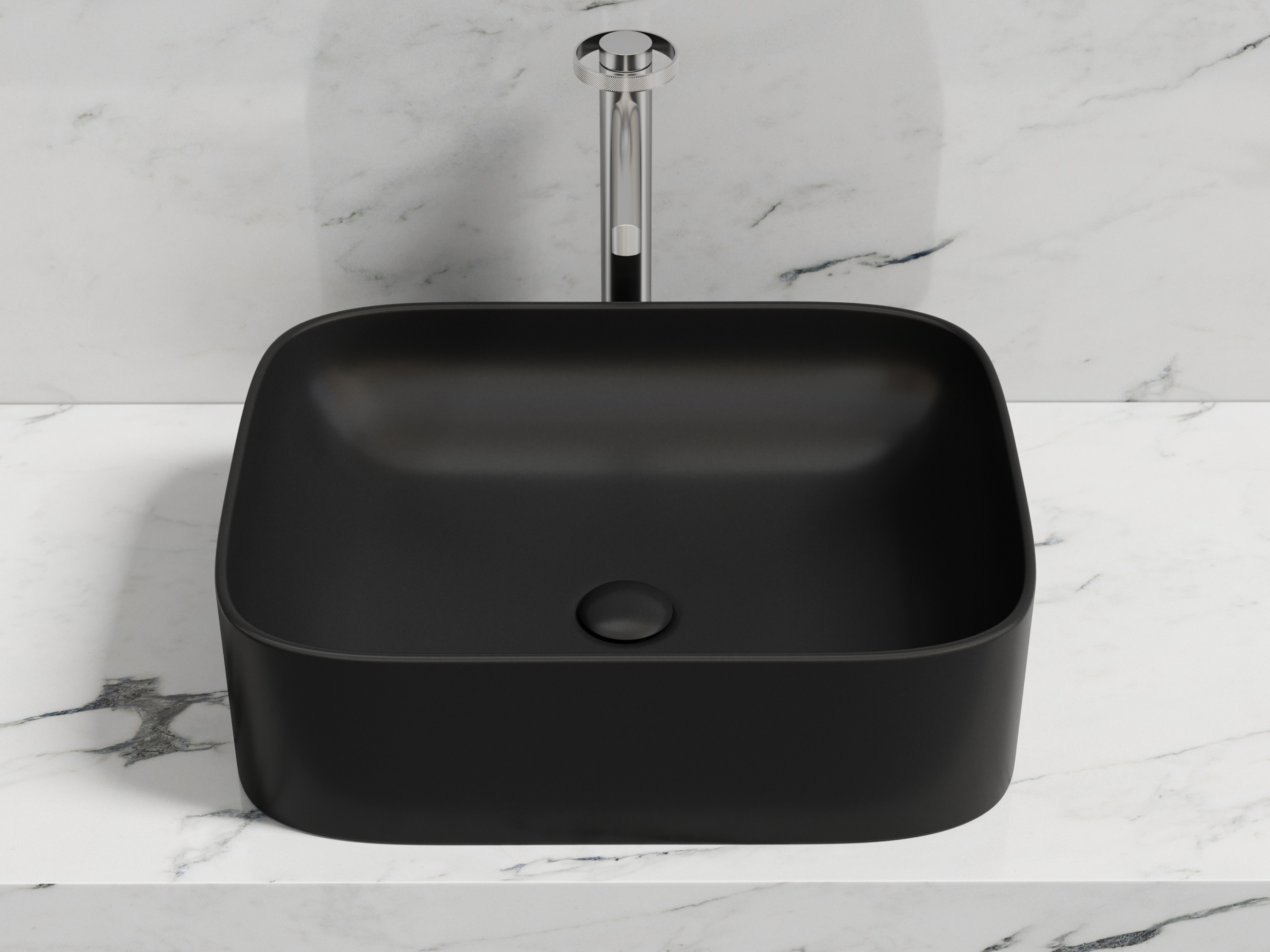 Настольные раковины сейчас высоко ценятся и позволяют предельно выгодно использовать площадь ванной комнаты. Раковина накладная 50см Ceramica Nova Element CN6052MB черный матовый является популярной моделью в этом классе и предоставляет возможность не только удобно сделать все гигиенические процедуры, но и делает интерьер комнаты более гармоничным. Дополнительного удобства этому умывальнику прибавляет прямоугольная форма и продуманное решение выполнения чаши без отверстий под кран. Материал выполнения - фарфор, ценится за свою износостойкость, не требует дополнительных усилий для очистки и замечательно сохраняет насыщенность цвета. Чаша монтируется просто - к столешнице и чудесно смотрится с различными товарами бренда Ceramica Nova, а гарантия на умывальник составляет 25 лет. Изделие, как и разные представители серии Element, произведено в изысканном ключе. Ровные изгибы, округлые формы, правильные параметры - все это делает такую модель прекрасным выбором для почитателей комфорта и эстетики. Умывальник производится в Италии и сделан в размерах: высота 15.5 см, ширина 50.5 см., глубина 38.5 см., что тоже является значительным преимуществом для тех, кто планирует разумно задействовать все пространство при планировке своего помещения.