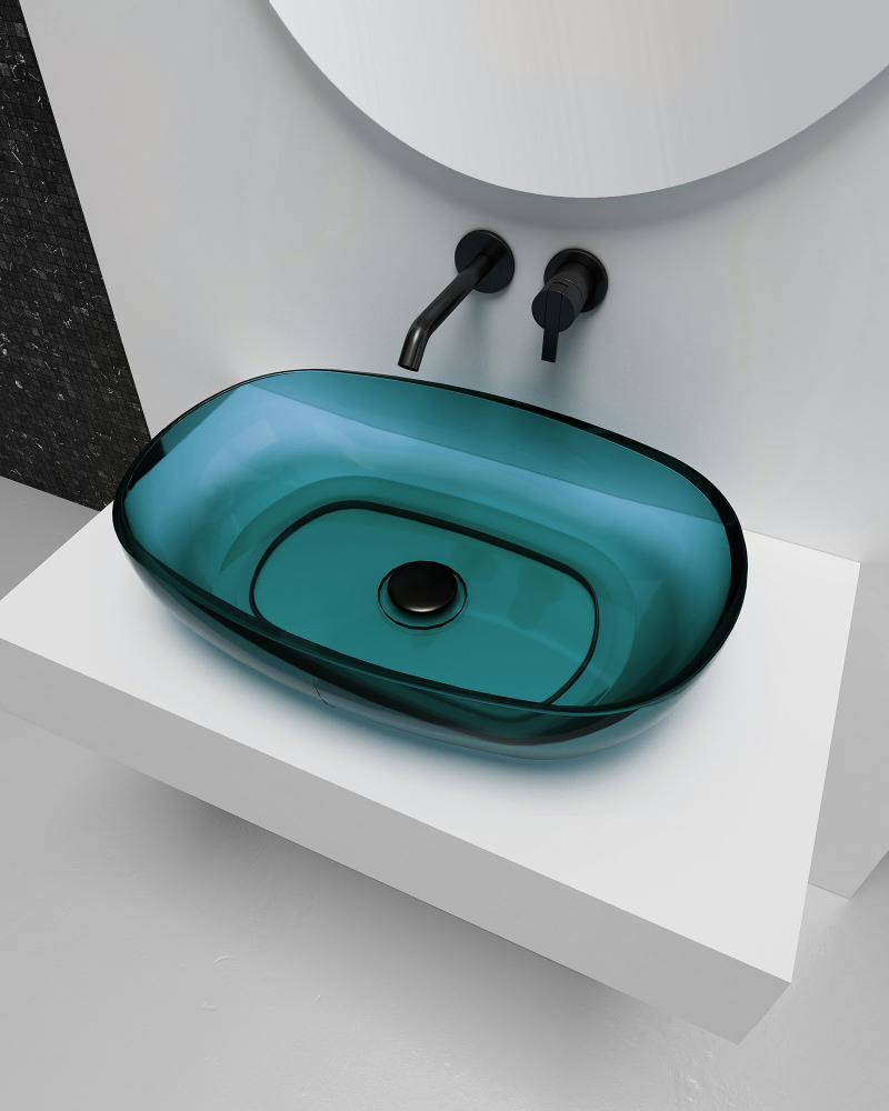 Настольные раковины в наше время высоко ценятся и позволяют очень эффективно использовать площадь ванной комнаты. Раковина накладная прозрачная ABBER Kristall AT2805Aquamarin бирюзовая является популярной моделью в этом классе и дает возможность не только удобно выполнять все гигиенические моменты, но и делает интерьер комнаты более гармоничным. Так же плюсов этому умывальнику прибавляет форма и удачное решение выполнения чаши без отверстий под кран. Материал изготовления - , котируется за свою износостойкость, не требует дополнительных усилий в обслуживании и превосходно сохраняет яркие краски в цвете. Чаша устанавливается просто - к столешнице и отлично сочетается с другими товарами бренда Abber, а гарантия на нее действует 5 лет. Изделие, как и другие представители серии Kristall, выполнено в необычном ключе. Ровные линии, мягкие формы, правильные пропорции - все это делает модель хорошим выбором для ценителей комфорта и роскоши. Умывальник производится в Германии и выполнен в размерах: высота 15.5 см, ширина 60 см., глубина 40 см., что так же является значительным преимуществом для тех, кто стремится разумно распорядиться каждым сантиметром при планировке своего помещения.
