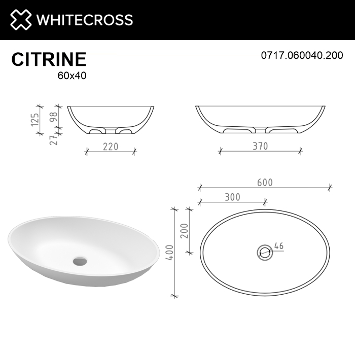 Умывальник WHITECROSS Citrine 60x40 (белый мат) иск. камень