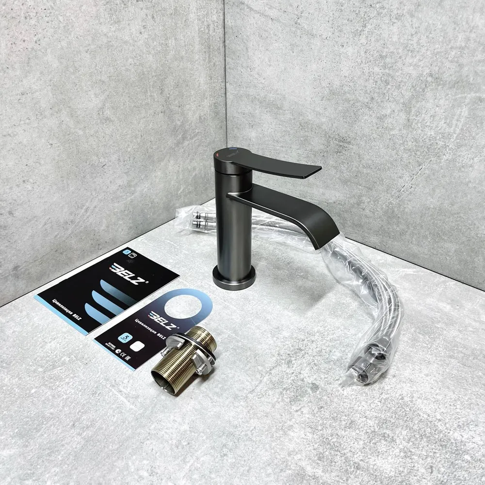 Смеситель для раковины BELZ B10812-3, оружейная сталь