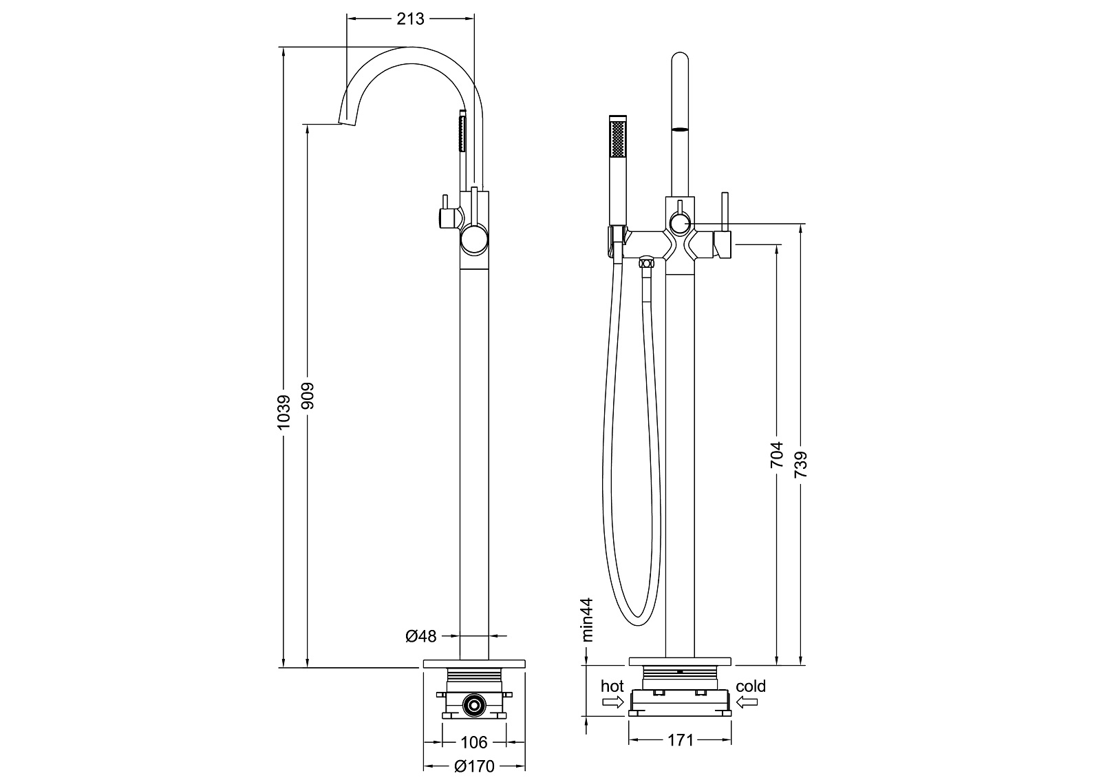| Монтаж смесителя | на пол |