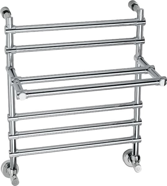 Полотенцесушитель водяной Margaroli Sole 452 4524705CRP 628х535 с полкой, хром - популярная модель, сделанная из ударопрочного материала - латуни, которая эффективно выполняет обогрев помещения. Оборудование имеет форму лесенку и габариты: ширина - 53.5 см, глубина - 33 см, высота - 62.8 см., что позволяет ему прекрасно разместиться в пространстве помещения. Межосевой промежуток составляет 50 см, а диаметр подводки достигает 1/2 дюйма. Подвесной монтаж и горизонтальное или нижнее направление подключения дают возможность быстро установить полотенцесушитель и подключить его к системе центрального отопления или к системе горячего водоснабжения. Модель линейки Sole замечательно справляется с внезапными перепадами давления или температуры, а специальная конструкция гарантирует долгий срок использования. Гарантия на товар бренда Margaroli действует 5 лет. Сушилка для полотенец считается лучшей в своей ценовой категории, производится в Италии и отлично выполняет свои функции.
