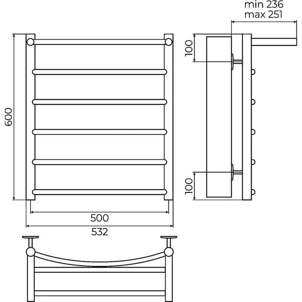 Полотенцесушитель водяной с полкой Terminus Классик П6 50х60 - современная модель, выполненная из надежного материала - нержавеющей стали, которая эффективно выполняет обогрев пространства. Отопительное оборудование имеет форму лесенку и габариты: ширина - 53.2 см, глубина - 23.6 см, высота - 60 см., что разрешает ему прекрасно вписаться в пространство помещения. Межосевой интервал составляет см, а диаметр подводки достигает дюйма. Подвесной санмонтаж и горизонтальное, нижнее направление подключения дают возможность легко расположить полотенцесушитель и подключить его к системе горячего водоснабжения. Модель линейки Классик замечательно справляется с неожиданными изменениями давления или температуры, а продуманная конструкция гарантирует продолжительный срок использования. Гарантия на товар бренда Terminus действует 10 лет. Сушилка для полотенец считается лучшей в своем ценовом классе, производится в России и качественно выполняет свои задачи.