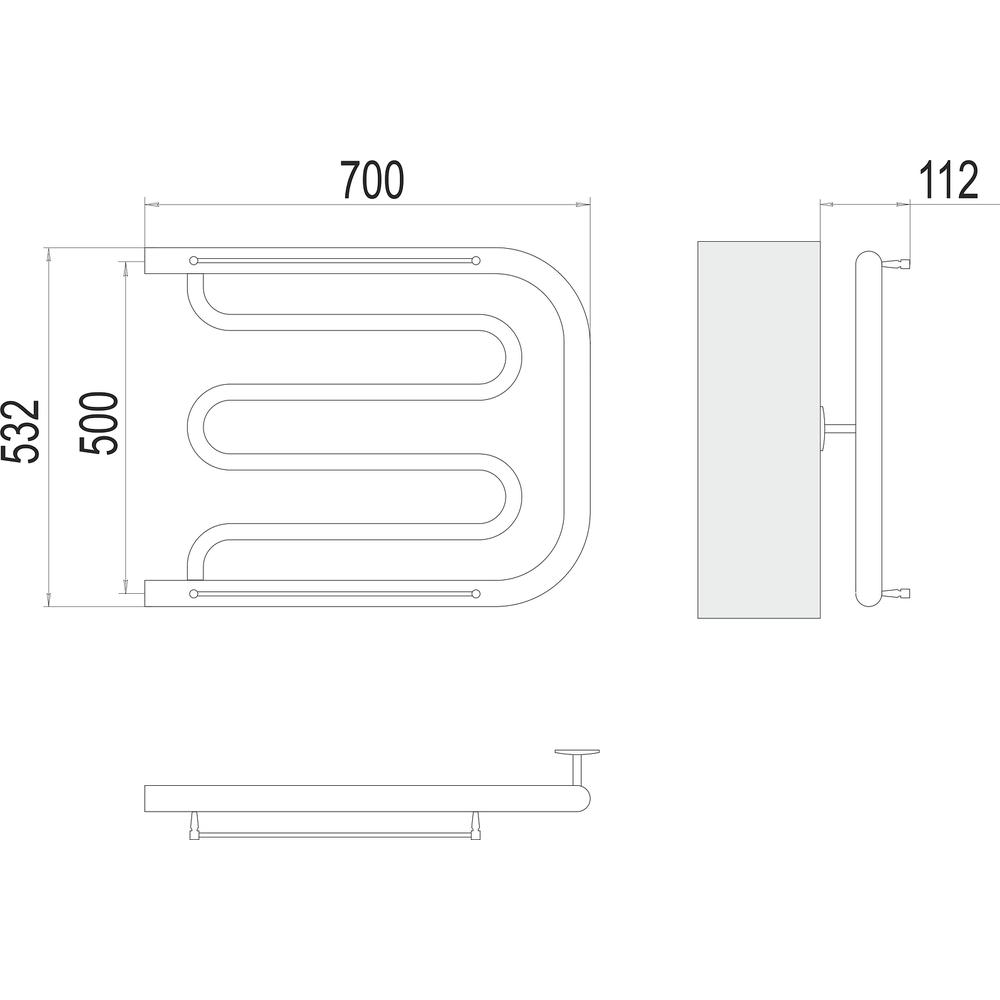 Полотенцесушитель водяной Terminus Фокстрот (1") БШ 50х70 - функциональная модель, выполненная из надежного материала - нержавеющей стали, которая осуществляет равномерный обогрев помещения. Оборудование имеет форму E-образную и параметры: ширина - 70 см, глубина - 11.2 см, высота - 53.2 см., что дает возможность ему отлично разместиться в пространстве душевой. Межосевой промежуток равен 50 см, а диаметр подводки достигает дюйма. Подвесной монтаж и правое, левое направление присоединения дают возможность без заминок установить полотенцесушитель и подключить его к системе горячего водоснабжения. Модель линейки Фокстрот 1" БШ замечательно справляется с неожиданными изменениями давления или температуры, а выверенная конструкция гарантирует длительный период использования. Гарантия на товар бренда Terminus действует 10 лет. Модель считается лучшей в своем ценовом классе, изготавливается в России и безотказно выполняет свои функции.