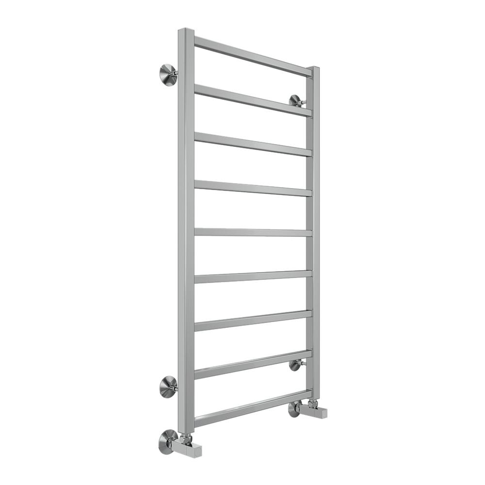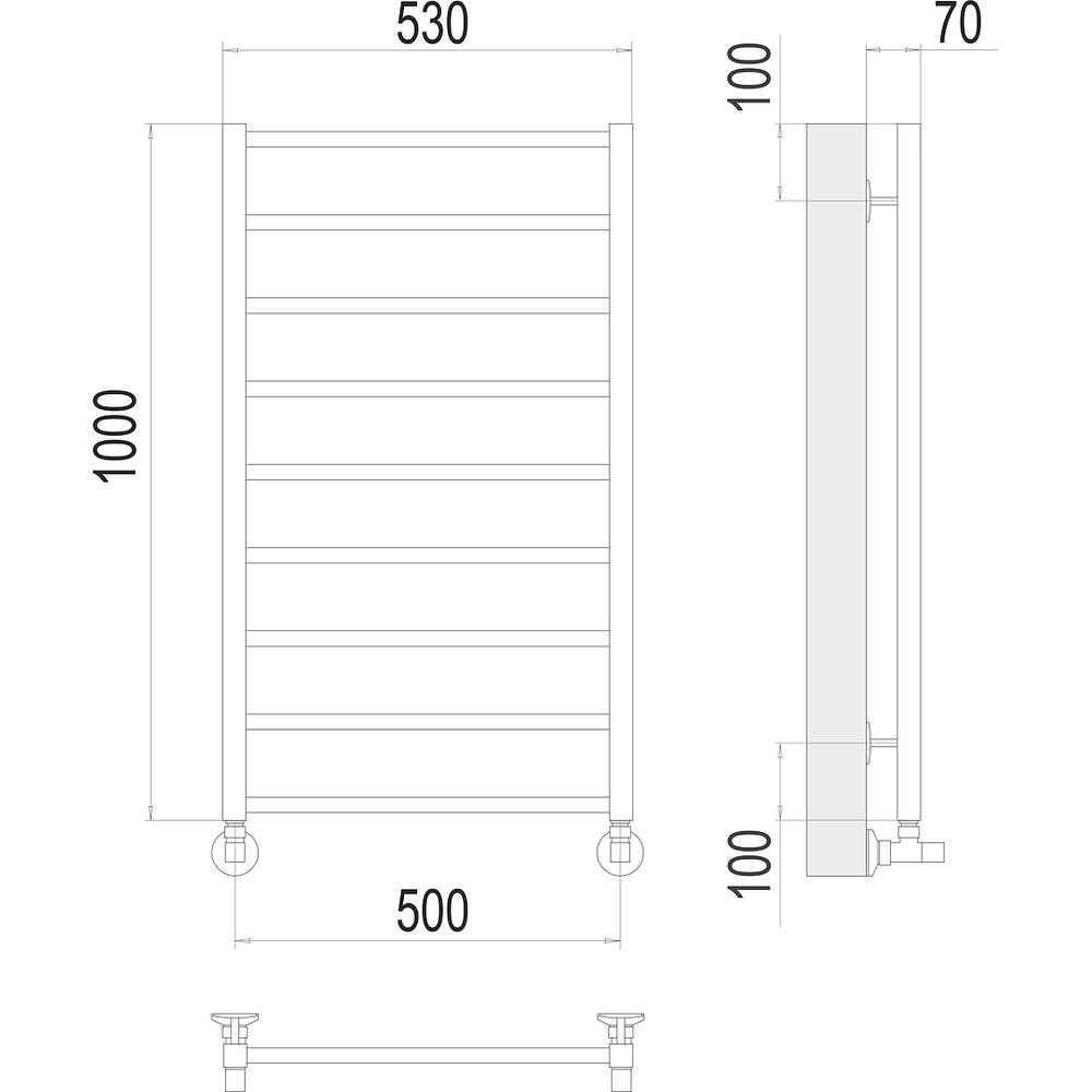 Полотенцесушитель водяной Terminus Контур П9 50х100 - известная модель, выполненная из надежного материала - нержавеющей стали, которая предусматривает обогрев всего помещения. Отопительное оборудование имеет форму лесенку и габариты: ширина - 53 см, глубина - 7 см, высота - 100 см., что дает возможность ему отлично вписаться в пространство душевой. Межосевой промежуток равен 50 см, а диаметр подводки достигает дюйма. Подвесной монтаж и горизонтальное, нижнее направление подсоединения дают возможность легко установить полотенцесушитель и подключить его к системе горячего водоснабжения. Модель линейки Контур замечательно справляется с резкими изменениями давления или температуры, а продуманная конструкция гарантирует долгий период эксплуатации. Гарантия на товар бренда Terminus составляет 10 лет. Модель считается лучшей в своей ценовой категории, изготавливается в России и качественно выполняет свои функции.