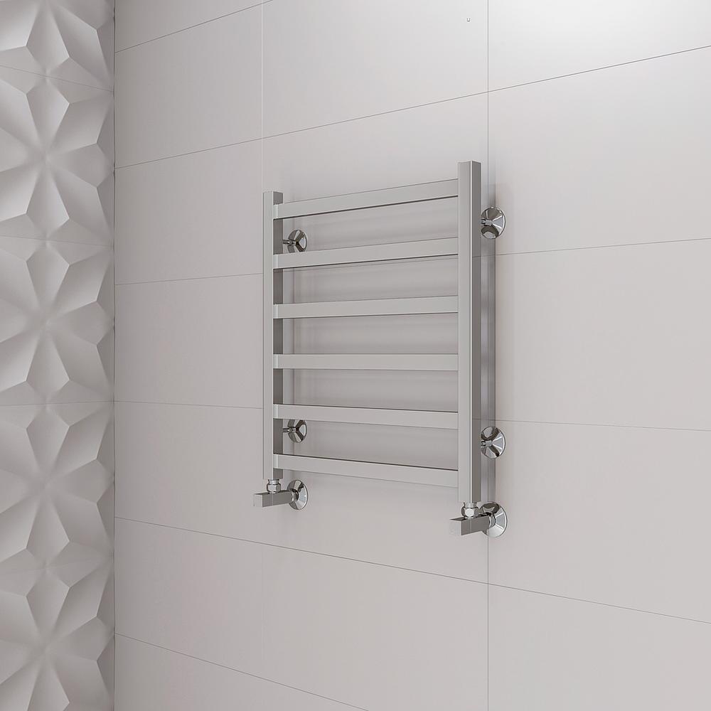 Полотенцесушитель водяной Terminus Ното П6 50х60 - популярная модель, выполненная из надежного материала - нержавеющей стали, которая предусматривает обогрев всего пространства. Отопительное оборудование имеет форму лесенку и габариты: ширина - 53.2 см, глубина - 7.4 см, высота - 60 см., что позволяет ему идеально расположиться в пространстве помещения. Межосевой интервал равен 50 см, а диаметр подводки достигает дюйма. Подвесной монтаж и горизонтальное, нижнее направление подсоединения дают возможность быстро разместить полотенцесушитель и подключить его к системе горячего водоснабжения. Модель линейки Ното превосходно справляется с неожиданными изменениями давления или температуры, а выверенная конструкция гарантирует многолетний период использования. Гарантия на товар бренда Terminus действует 10 лет. Модель является лучшей в своем ценовом сегменте, производится в России и безотказно выполняет свои задачи.