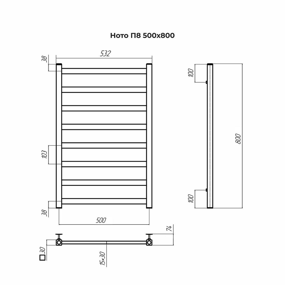 Полотенцесушитель водяной Terminus Ното П8 50х80 - известная модель, сделанная из прочного материала - нержавеющей стали, которая эффективно выполняет обогрев пространства. Отопительное оборудование имеет форму лесенку и размеры: ширина - 53.2 см, глубина - 7.4 см, высота - 80 см., что разрешает ему прекрасно разместиться в пространстве комнаты. Межосевой промежуток составляет 50 см, а диаметр подводки достигает дюйма. Подвесной монтаж и горизонтальное, нижнее направление подключения дают возможность легко установить полотенцесушитель и подключить его к системе горячего водоснабжения. Модель линейки Ното великолепно справляется с внезапными перепадами давления или температуры, а выверенная конструкция обеспечивает долговременный срок эксплуатации. Гарантийное обслуживание на товар бренда Terminus действует 10 лет. Сушилка для полотенец является лучшей в своем ценовом классе, производится в России и безотказно выполняет свои задачи.