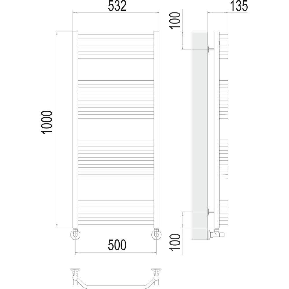Полотенцесушитель водяной Terminus Виктория П20 50х100 - новая модель, выполненная из прочного материала - нержавеющей стали, которая предусматривает обогрев всего пространства. Отопительное оборудование имеет форму лесенку и размеры: ширина - 53.2 см, глубина - 13.5 см, высота - 100 см., что дает возможность ему идеально вписаться в пространство комнаты. Межосевой интервал равен 50 см, а диаметр подводки достигает дюйма. Подвесной монтаж и горизонтальное, нижнее направление подключения дают возможность с легкостью расположить полотенцесушитель и подключить его к системе горячего водоснабжения. Модель линейки Виктория замечательно справляется с резкими перепадами давления или температуры, а специальная конструкция гарантирует долгий срок эксплуатации. Официальная гарантия на товар бренда Terminus составляет 10 лет. Сушилка для полотенец является лучшей в своем ценовом классе, изготавливается в России и безотказно выполняет свои функции.