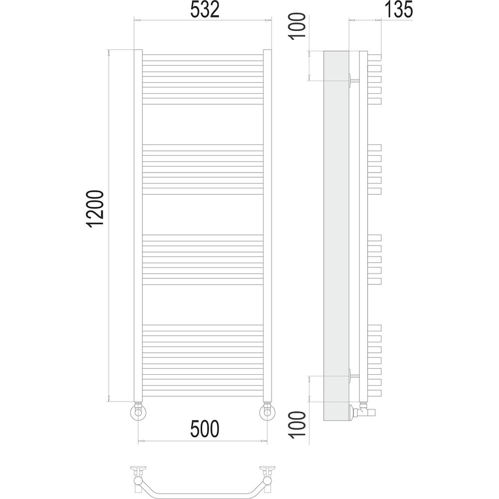 Полотенцесушитель водяной Terminus Виктория П22 50х120 - популярная модель, сделанная из прочного материала - нержавеющей стали, которая эффективно выполняет обогрев помещения. Оборудование имеет форму лесенку и размеры: ширина - 53.2 см, глубина - 13.5 см, высота - 120 см., что разрешает ему прекрасно вписаться в пространство душевой. Межосевой интервал составляет 50 см, а диаметр подводки достигает дюйма. Подвесной санмонтаж и горизонтальное, нижнее направление подсоединения дают возможность в два счета установить полотенцесушитель и подключить его к системе горячего водоснабжения. Модель линейки Виктория великолепно справляется с перепадами давления или температуры, а выверенная конструкция гарантирует длительный период использования. Гарантия на товар бренда Terminus действует 10 лет. Сушилка для полотенец является лучшей в своем ценовом сегменте, производится в России и отлично выполняет свои задачи.