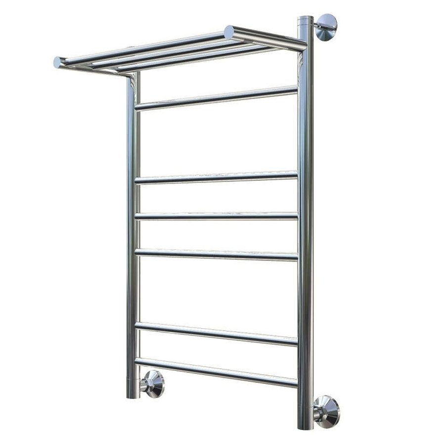 Полотенцесушитель водяной Тругор Аспект серия 3 80х40 хром, с полкой - функциональная модель, сделанная из ударопрочного материала - нержавеющей стали, которая осуществляет равномерный обогрев пространства. Отопительное оборудование имеет форму лесенку и параметры: ширина - 45.4 см, глубина - 29.2 см, высота - 80.6 см., что позволяет ему как нельзя лучше разместиться в пространстве душевой. Межосевой промежуток равен 50 см, а диаметр подводки достигает 1/2 дюйма. Подвесной монтаж и горизонтальное, вертикальное, диагональное, боковое, нижнее направление подсоединения дают возможность без проблем расположить полотенцесушитель и подключить его к системе горячего водоснабжения или к системе центрального отопления. Модель линейки Аспект серия 3 замечательно справляется с изменениями давления или температуры, а выверенная конструкция обеспечивает долговременный период использования. Гарантия на товар бренда Тругор действует 1 год. Сушилка для полотенец считается лучшей в своем ценовом сегменте, производится в России и безотказно выполняет свои функции.