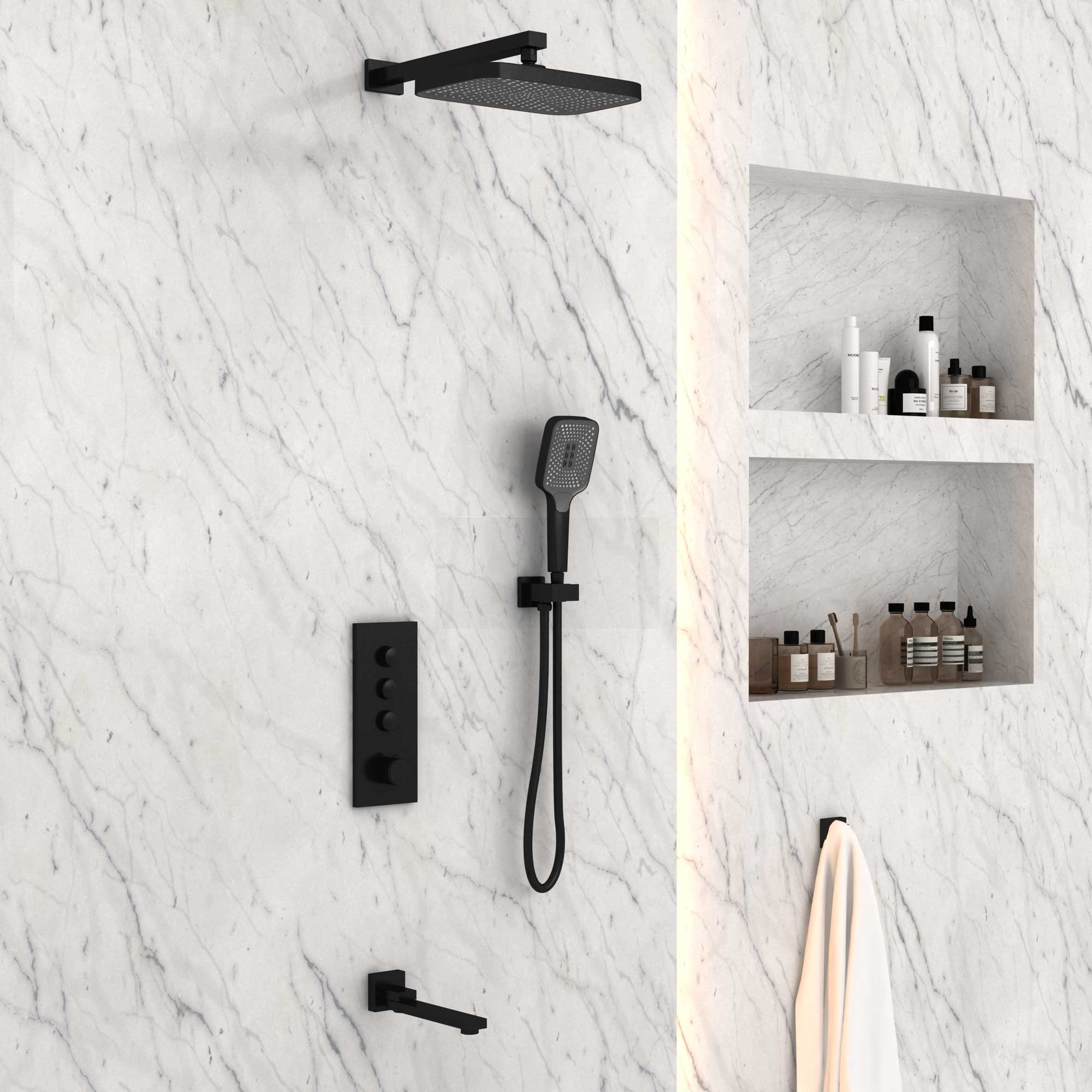 Душевой комплект Vincea VSFW-433T1MB встраиваемый, термостатический, 3 режима, черный