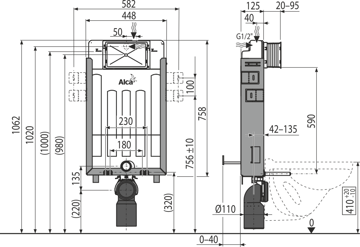 | Назначение инсталляции | для подвесных унитазов |