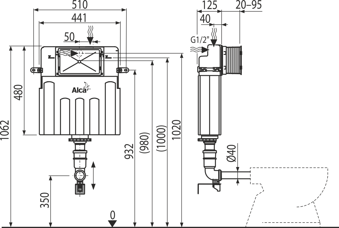 Бачок скрытого монтажа для приставных унитазов AlcaPlast Basicmodul AM112