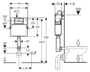 Бачок скрытого монтажа для приставных унитазов Geberit Duofix UP100 109.100.00.1