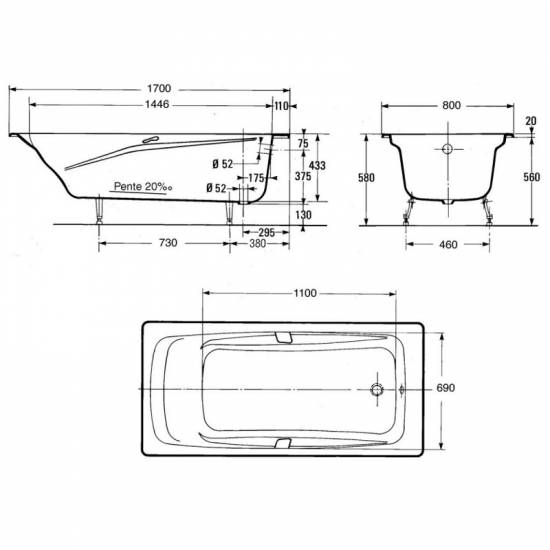 Приятный вид ванной комнаты в 90% зависит от того, как оформлен ее дизайн и где стоит сама сантехническая конструкция. Чугунная ванна фирмы Jacob Delafon отлично будет смотреться как в светлом, так и без окон помещении. Если вы хотите иметь у себя дома красивый санузел, вам обязательно нужна чугунная ванна Jacob Delafon Repos 170x80 см c ручками. На эти модели действует 25 лет гарантии. При оформлении заказа вы можете подобрать декоративные элементы, а также дополнительное оснащение в виде подголовника или ручек. Великолепная коллекция Repos уже завоевала доверие у людей. Чугунный материал по факту есть надёжным и будет отлично смотреться в любом дизайне интерьера. Вам можно не сомневаться в том, что прямоугольная форма хорошо подойдёт как для маленького по габаритам помещения, так и для большого. Как парням, так и женщинам будет очень комфортно находиться в модели размером 117 на 80 см, ведь она упругая и вместительная. Экземпляр из чугуна будет отлично смотреться в помещении. Монтаж изделия проходит быстро и не вызывает разных трудностей во время установки. Вы можете быть убеждены в том, что товары с пометкой «Производитель – Франция» действительно премиум качества.