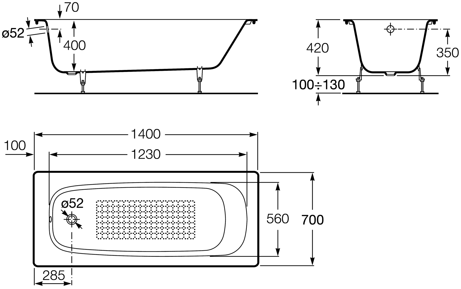 Чугунная ванна Roca Continental 212914001 (140х70) с противоскользящим покрытием