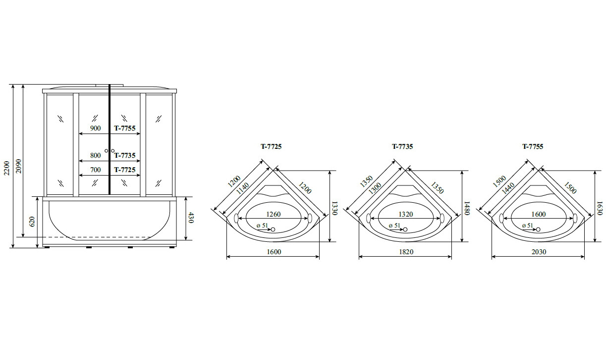 Душевой бокс Timo Lux T-7755 150x150 с гидромассажем