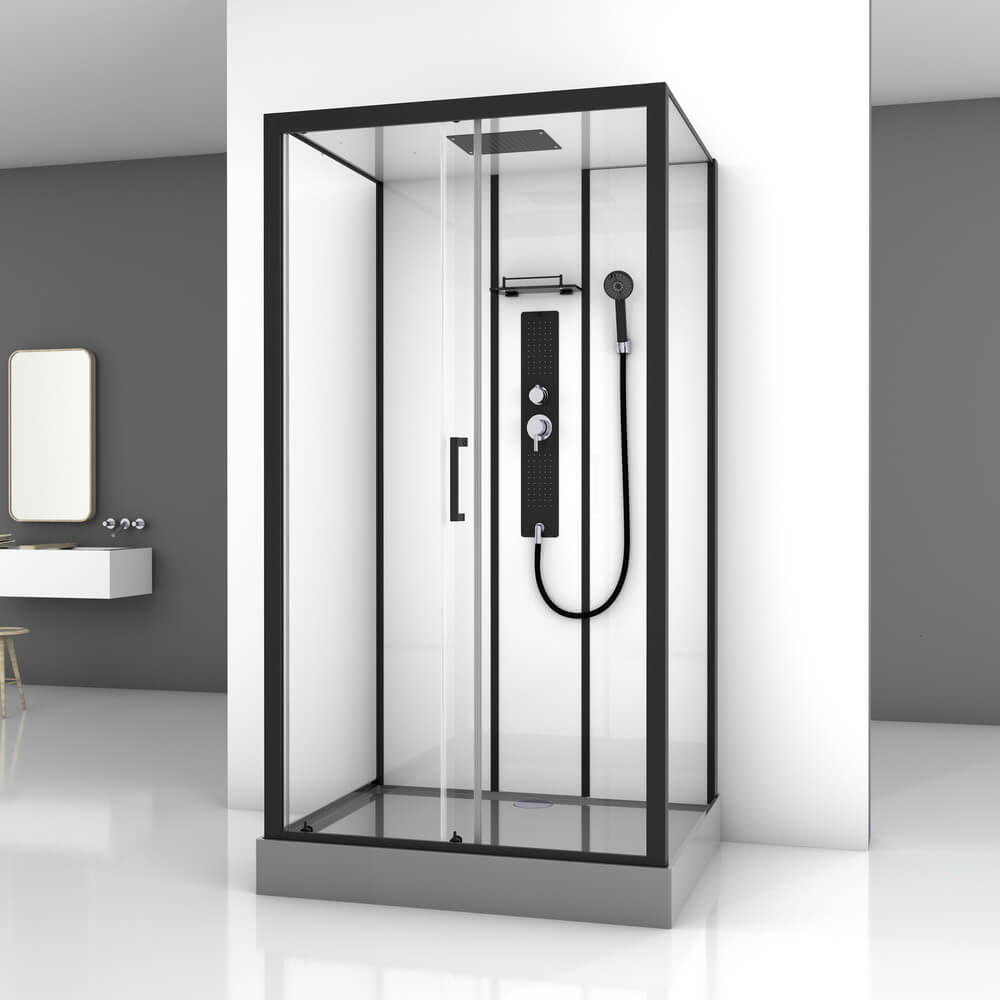 Душевая кабина Black&White G8008 115x90x215 профиль черный матовый, стекло прозрачное