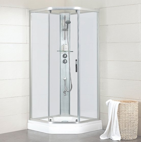 Душевая кабина Bravat Waterfall 90x90 BC090.6100A хром стекло прозрачное нет - популярная модель, которая отличается отличным качеством сборки и соизмеримой ценой. Такая конструкция пятиугольной формы сделана в светлых тонах, исполнение задней стенки - матовое. Кабинка имеет низкий, средний поддон, изготовленный из акрила и не займет лишнего пространства в ванной комнате. Модель имеет цвет профиля - хром глянцевый и полотно двери - прозрачное, оснащена стандартно, что делает ее достаточно автономной. Раздвижная конструкция дверей делает ход створок плавным и бесшумным. Размеры изделия - ширина 90 см, глубина 90 см, высота 215 см. Кабина для душа от бренда Bravat выполнена в элегантном стиле и превосходно впишется в интерьер, не нагружая его. Качественная сборка и современные материалы изделия гарантируют долгий и комфортный срок эксплуатации. Страна производитель - Германия, гарантия на товар линейки Eco - 5 лет.