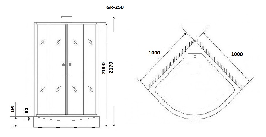Душевая кабина Grossman GR250 100x100x205 профиль черный, стекло прозрачное