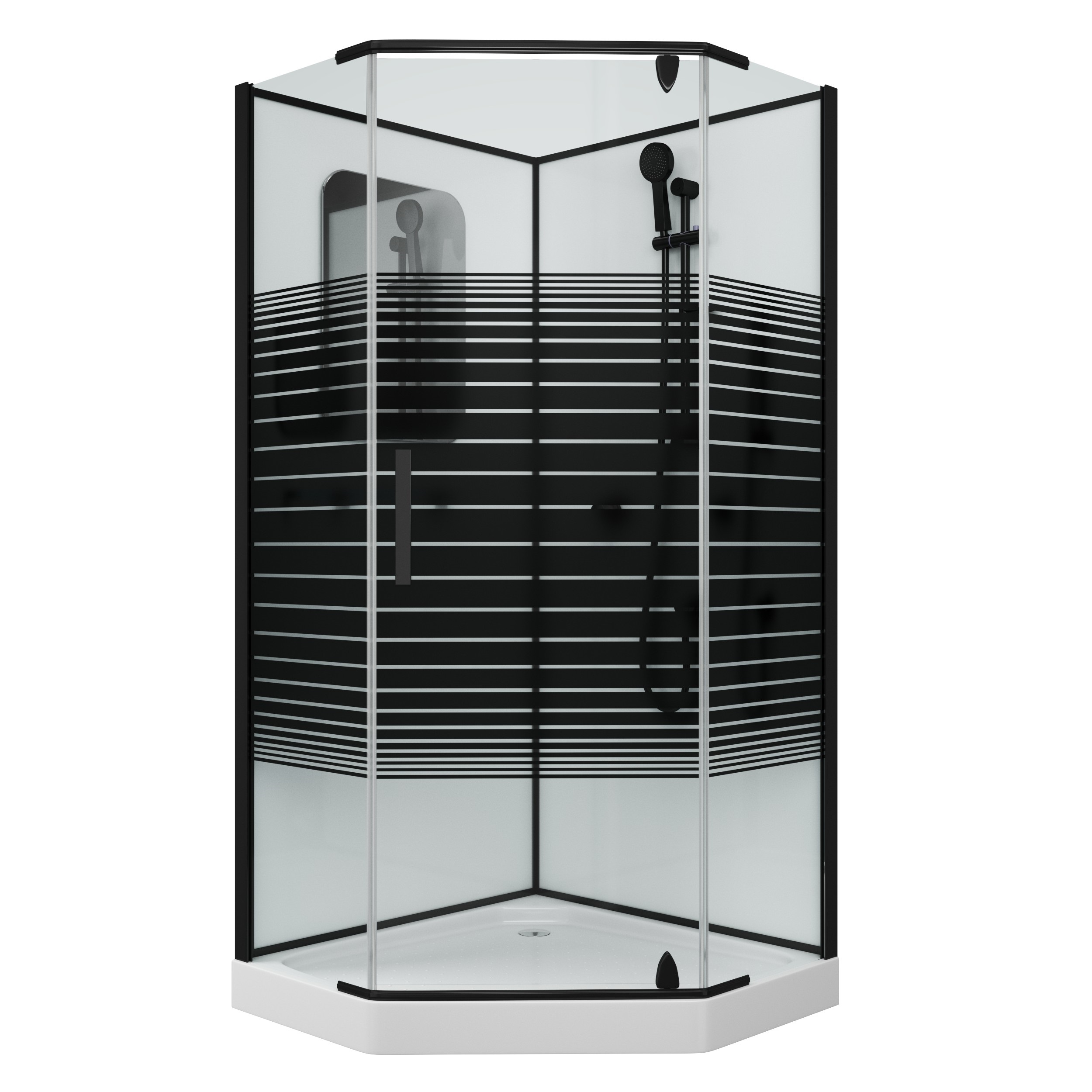 Душевая кабина Grossman GR270D 100x100x205 профиль черный, стекло прозрачное с узором - популярная модель, которая характеризуется высоким качеством сборки и соизмеримой стоимостью. Эта конструкция пятиугольной формы реализована в светлых и легких тонах, исполнение задней стенки - матовое. Кабинка имеет низкий, средний поддон, изготовленный из акрила и не займет много места в ванной комнате. Модель имеет цвет профиля - черный и полотно двери - прозрачное, с узором, оснащена всем необходимым, что делает ее достаточно автономной. Распашная конструкция дверей делает ход створок плавным и тихим. Размеры изделия - ширина 100 см, глубина 100 см, высота 205 см. Кабина для душа от бренда Grossman выполнена в элегантном стиле и отлично дополнит интерьер, не отягощая его. Качественная сборка и современные материалы изделия обеспечат длительный и комфортный срок использования. Страна производитель - Китай, гарантия на товар линейки Classic - 5 лет.