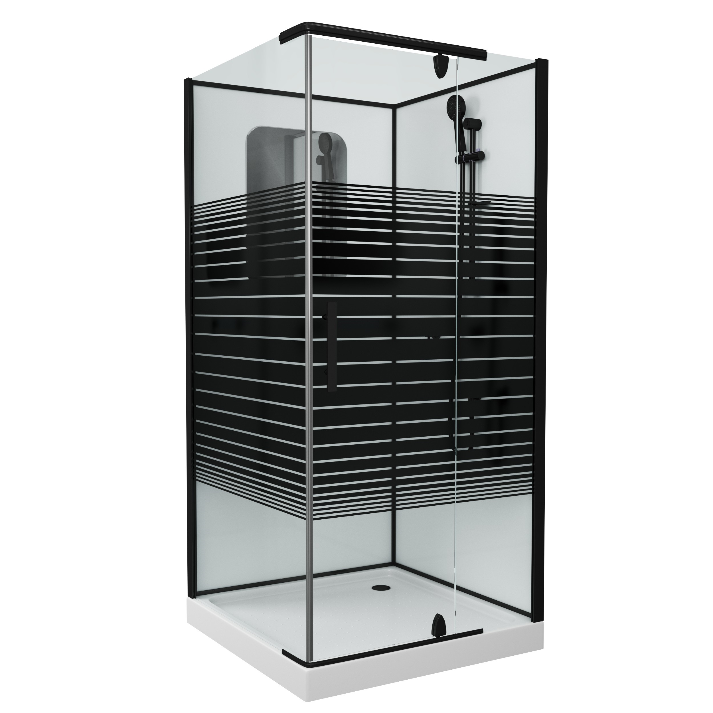 Душевая кабина Grossman GR271QR 90x90x205 профиль черный, стекло прозрачное с узором