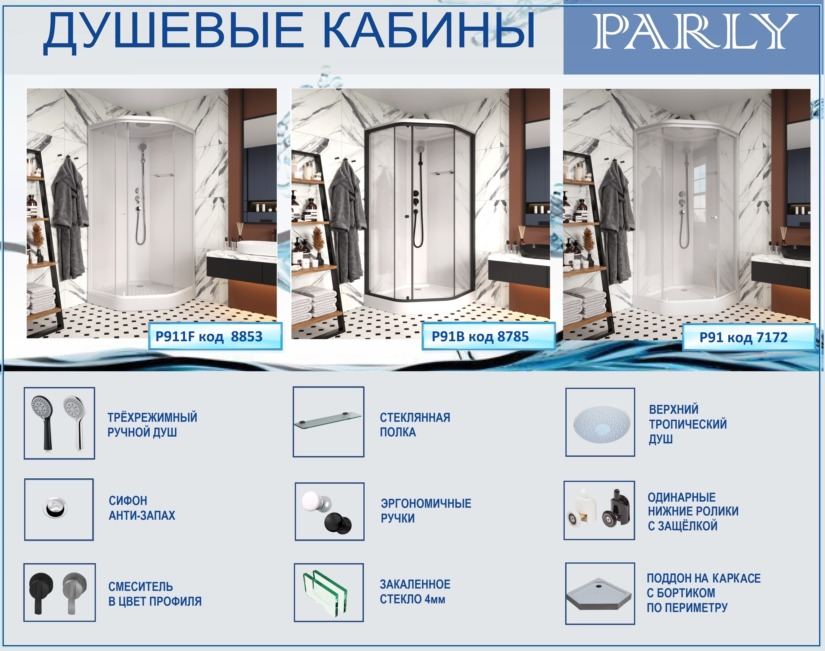 Душевая кабина Parly Penta P91 90x90x215 профиль белый, стекло прозрачное