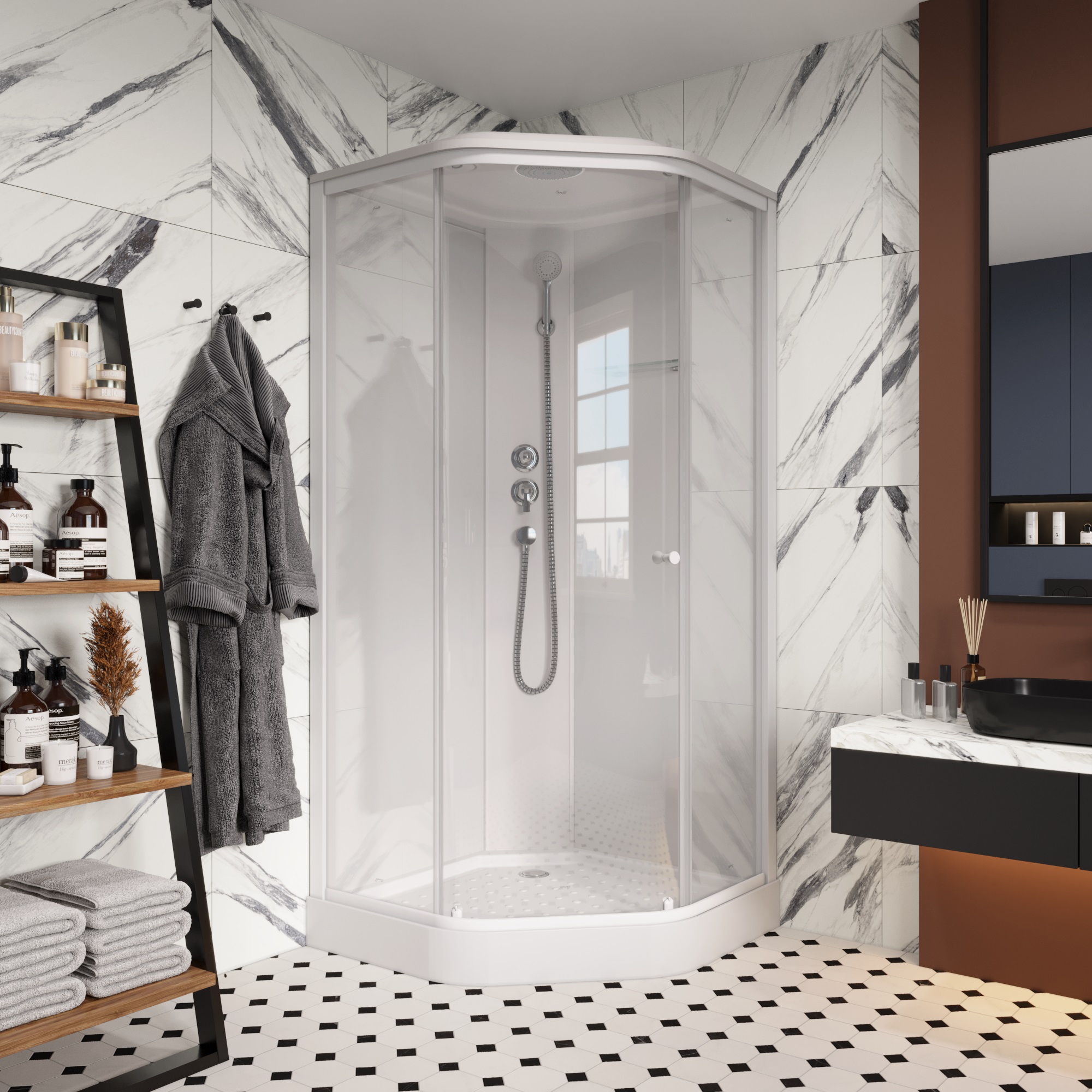Душевая кабина Parly Penta P91 90x90x215 профиль белый, стекло прозрачное - новая модель, которая полюбилась клиентам своим высоким качеством сборки и доступной ценой. Такая конструкция пятиугольной формы выполнена в светлых и приятных тонах, исполнение задней стенки - матовое. Кабинка имеет низкий, средний поддон, изготовленный из акрила и не займет лишнего пространства в ванной комнате. Модель имеет цвет профиля - белый и полотно двери - прозрачное, оснащена стандартно, что делает ее достаточно автономной. Раздвижная конструкция дверей делает ход створок легким и беззвучным. Параметры изделия - ширина 90 см, глубина 90 см, высота 215 см. Кабина для душа от бренда Parly выполнена в лаконичном стиле и превосходно впишется в интерьер, не отягощая его. Качественная сборка и добротные материалы изделия обеспечат длительный и комфортный период эксплуатации. Страна изготовитель - Россия, гарантийное обслуживание линейки Penta - 1 год.