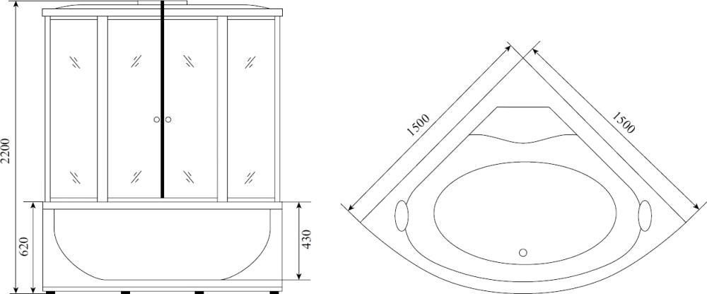 Душевая кабина Timo Lux Т-7755 150x150x220 профиль хром глянцевый, стекло прозрачное