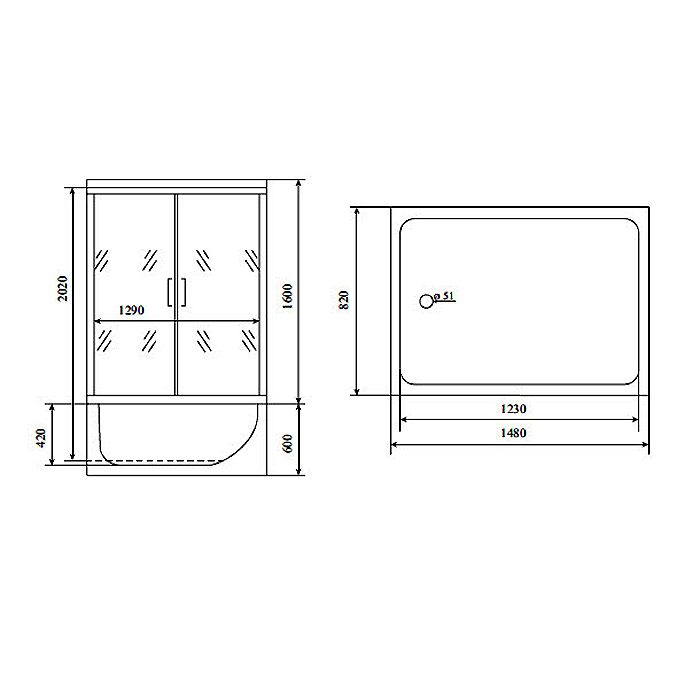 Душевая кабина Timo Lux TL-1505 148x82x220 профиль хром глянцевый, стекло прозрачное