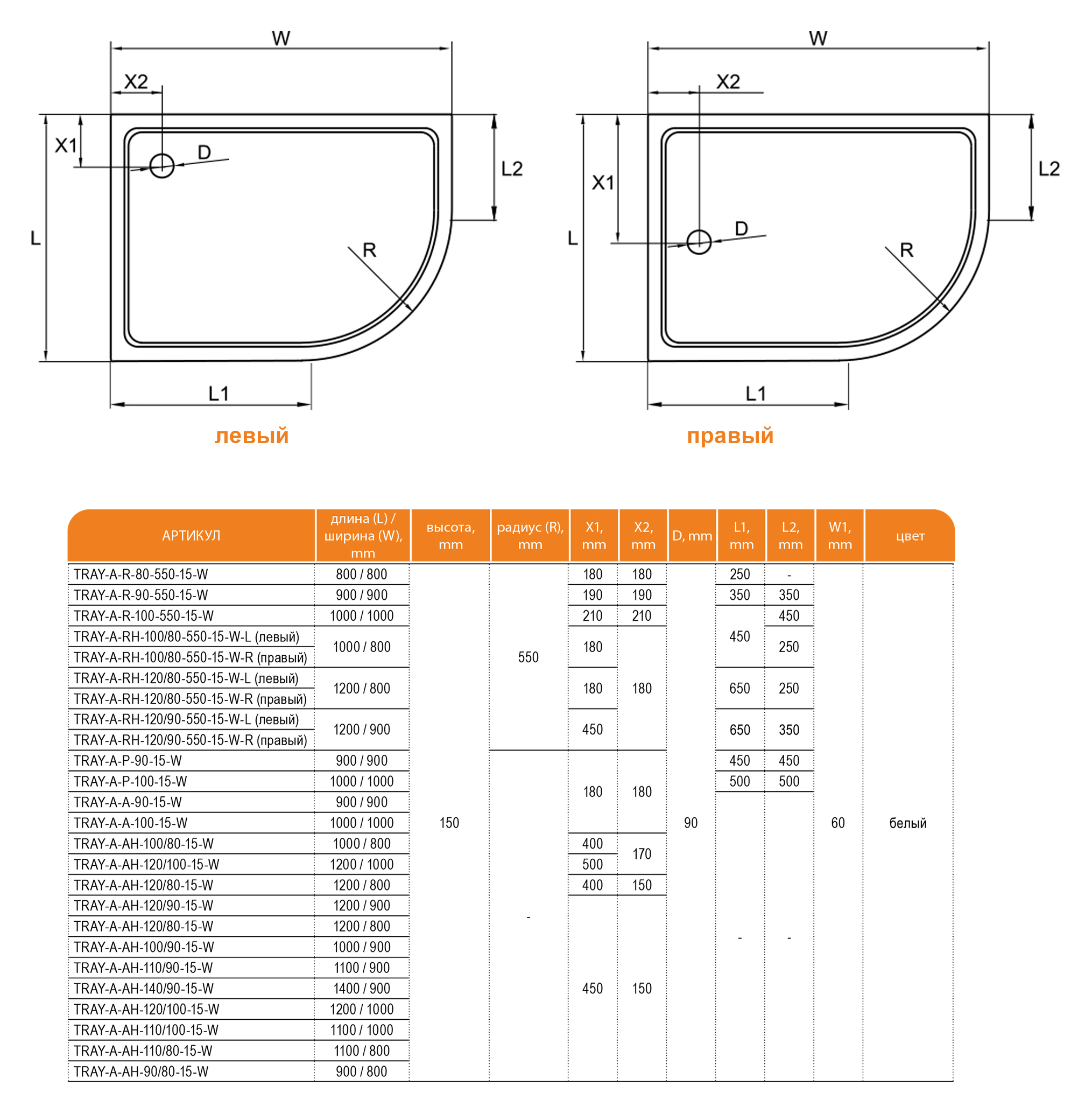 Акриловый поддон Cezares Tray A RH 120x90x15 L Белый