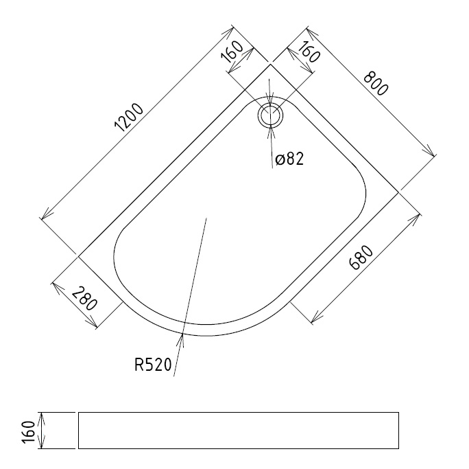 Акриловый поддон для душа Gemy 120х80х16 радиальный R Белый