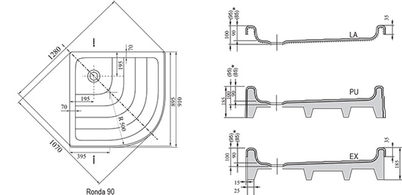 Акриловый поддон для душа Ravak Kaskada Ronda 90x90 PU Белый