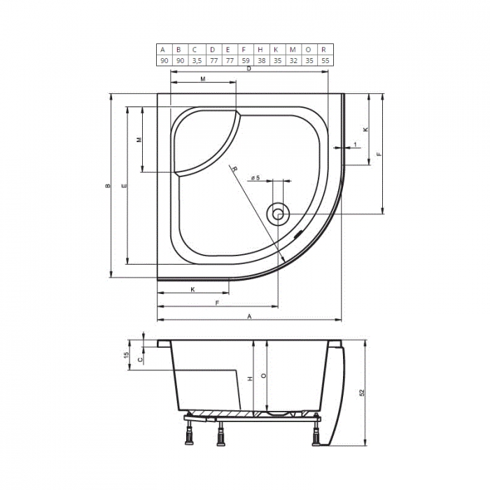 Акриловый поддон для душа Riho 343 DB43 90x90x52 без антискользящего покрытия