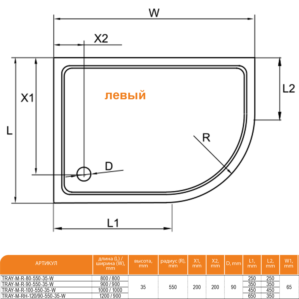 Поддон из стеклокомпозита Cezares Tray M RH 120x90x4 L Белый