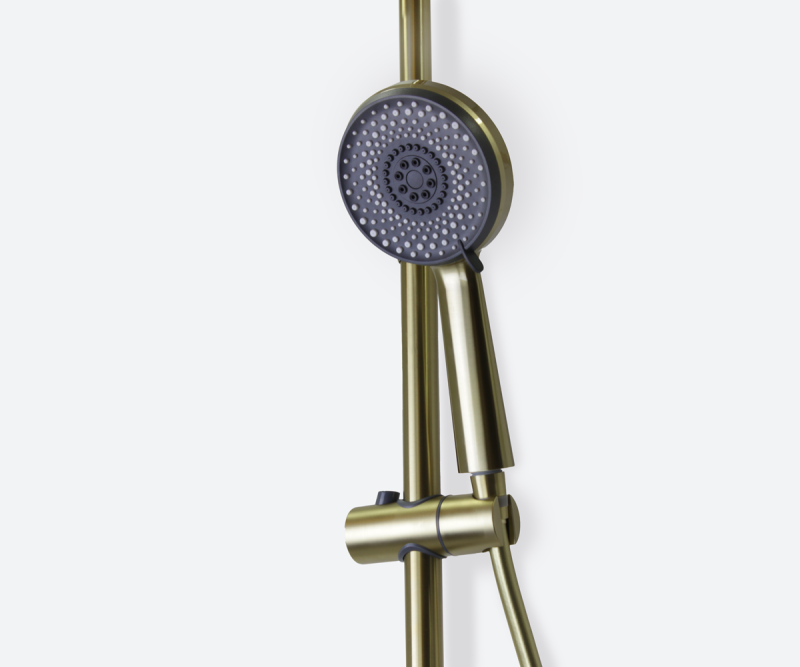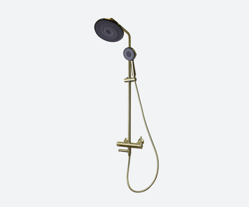 Душевая стойка AVANTGARDE известного бренда Bronze de Luxe производства Италии отменно дополнит пространство ванной комнаты и предоставит возможность легко осуществлять все водные манипуляции. Ее высота составляет 121.5 см, длина шланга 150 см, а размер лейки см. Благодаря качественному материалу исполнения - латуни, поверхность системы устойчива к появлению известковых отложений и сколов, и в довесок не требует значительных усилий при уходе. Интересный и изысканный внешний вид модели и цвет - бронза шлифованная, сделают ее правильным акцентом в планировании душевой. Стойка произведена в соответствии со всеми номами отечественных и европейских стандартов и обладает гарантийным сроком - 3 года. Артикул модели 2039GB. Верхний душ легко регулируется, что позволяет откорректировать удобный угол наклона при использовании.