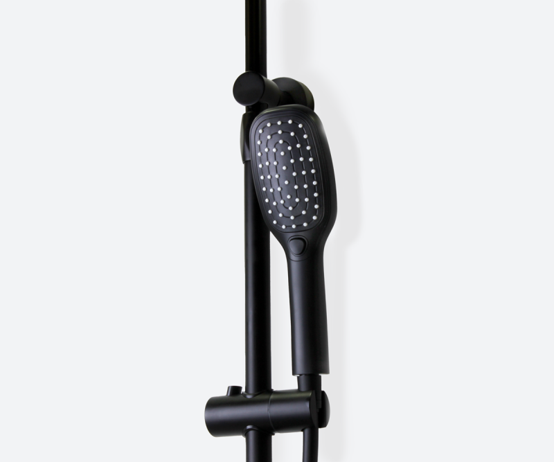 Душевая стойка AVANTGARDE популярного бренда Bronze de Luxe производства Италии чудесно впишется в интерьер ванного помещения и предоставит возможность легко выполнить все гигиенические манипуляции. Ее высота составляет 121.5 см, длина шланга 150 см, а размер лейки см. Из-за добротного материала исполнения - латуни, поверхность системы обладает устойчивостью к возникновению ржавчины, отложений и царапин, и в довесок не требует значительных усилий при уходе. Красивый и изысканный внешний вид модели и цвет - черный матовый, сделают ее завершающим акцентом в убранстве душевой. Стойка произведена согласно всем нормам европейских стандартов и располагает гарантийным сроком - 3 года. Артикул модели 2039H. Верхний душ достаточно просто регулируется, что позволяет подобрать оптимальный угол наклона при использовании.