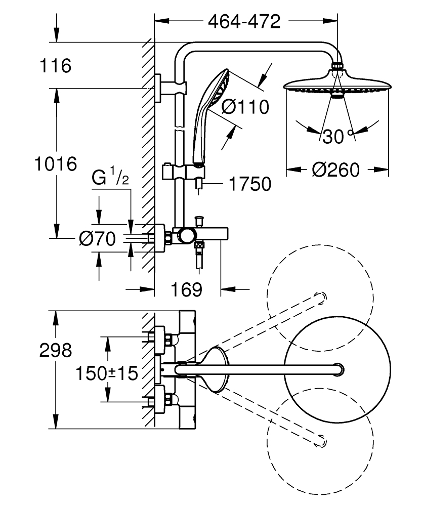 Душевая стойка Euphoria популярного бренда Grohe производства Германии превосходно впишется в пространство ванного помещения и предоставит возможность с удобством осуществлять все гигиенические процедуры. Ее высота составляет 113.20 см, длина шланга 175 см, а размер лейки 11 см. Из-за добротного материала изготовления - латуни, поверхность системы очень стойкая к возникновению известковых отложений и царапин, и в довесок не требует особых усилий при очистке. Интересный и лаконичный внешний вид модели и цвет - хром, сделают ее отличным акцентом в планировании душевой. Стойка сделана соответственно всем нормам европейских стандартов и располагает полной гарантией - 5 лет. Артикул модели 26114001. Верхний душ достаточно просто регулируется, что позволяет настроить удобный угол наклона при эксплуатации.