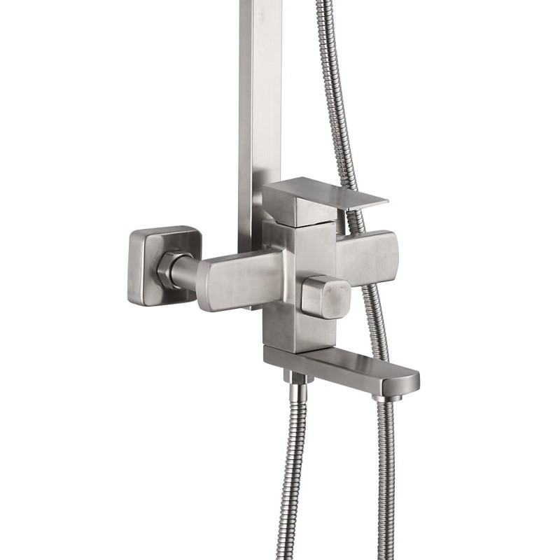 Душевая стойка HB803 востребованного бренда Haiba производства Китая чудесно впишется в интерьер санузла и даст возможность с комфортом проводить все гигиенические манипуляции. Ее высота составляет 124.8 см, длина шланга 150 см, а размер лейки см. Благодаря высокопрочному материалу изготовления - нержавеющей стали, поверхность системы обладает устойчивостью к появлению ржавчины, отложений и механических повреждений, и в довесок не требует значительных усилий при уходе. Приятный и неброский внешний вид модели и цвет - сталь, сделают ее завершающим акцентом в убранстве душевой. Стойка сделана согласно всем нормам отечественных и европейских стандартов и располагает полной гарантией - 5 лет. Артикул модели HB24803. Верхний душ легко регулируется, что позволяет подобрать оптимальный угол наклона при эксплуатации.